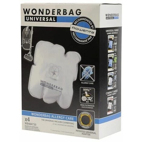 Sacs wonderbag par 4 wb484720 : Sacs pour Aspirateur Rowenta compatible avec appareils Ro5921r1/410 silence force extreme, Ro582211/410 silence force extreme, Ro593811/410 silence force extreme, Ro544311/410 x-trem power 2, Ro4721fa/410 silence force, Ro453011/410 silence force, Ro4721fb/410 silence force, Ro472311/410 silence force, Ro472911/410 silence force upgrade, Ro592111/410 silence force extreme, Ro473311/410 silence force, Ro476211/410 silence force upgrade, Ro5761ea/410 silence force extrme compact, Ro5927ea/410 silence force extreme, Rs825fa intenso, Rs825 intenso, Rs820 intenso, Ro582111/411 silence force, Ro4721fa/411 silence force upgrade, Rs810fa intenso, Rs810 intenso, Ro582311/411 silence force extreme, Ro434111/410 x-trem power, Ro434111/411 x-trem power, Ro474311/410 silence force upgrade, Ro442111/410 silence force, Ro454011/410 silence force, Ro452011/410 silence force, Ro4242fa/410 artec 2, Ro5911da/410 silence force exterme, Ro452311/410 silence force, Ro4725fa/410 silence force upgrade